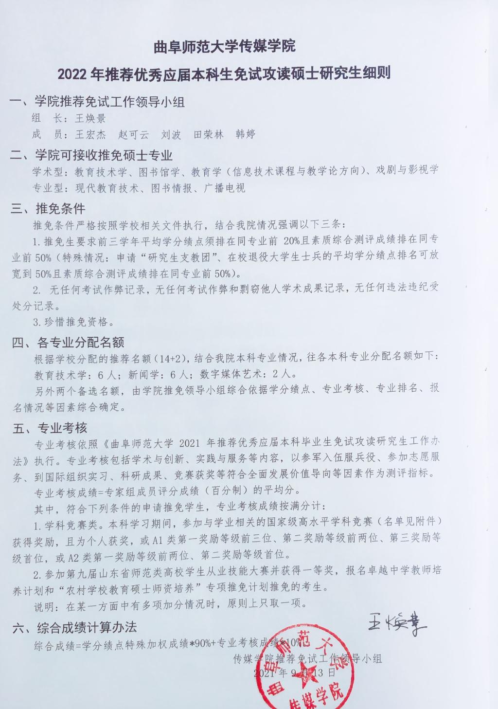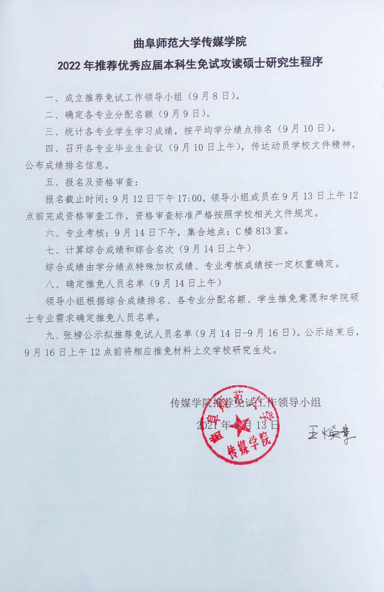 【来源:曲阜师范大学2022年推荐优秀应届本科生免试攻读硕士研究生细则 | 发布日期:2021-09-13 】