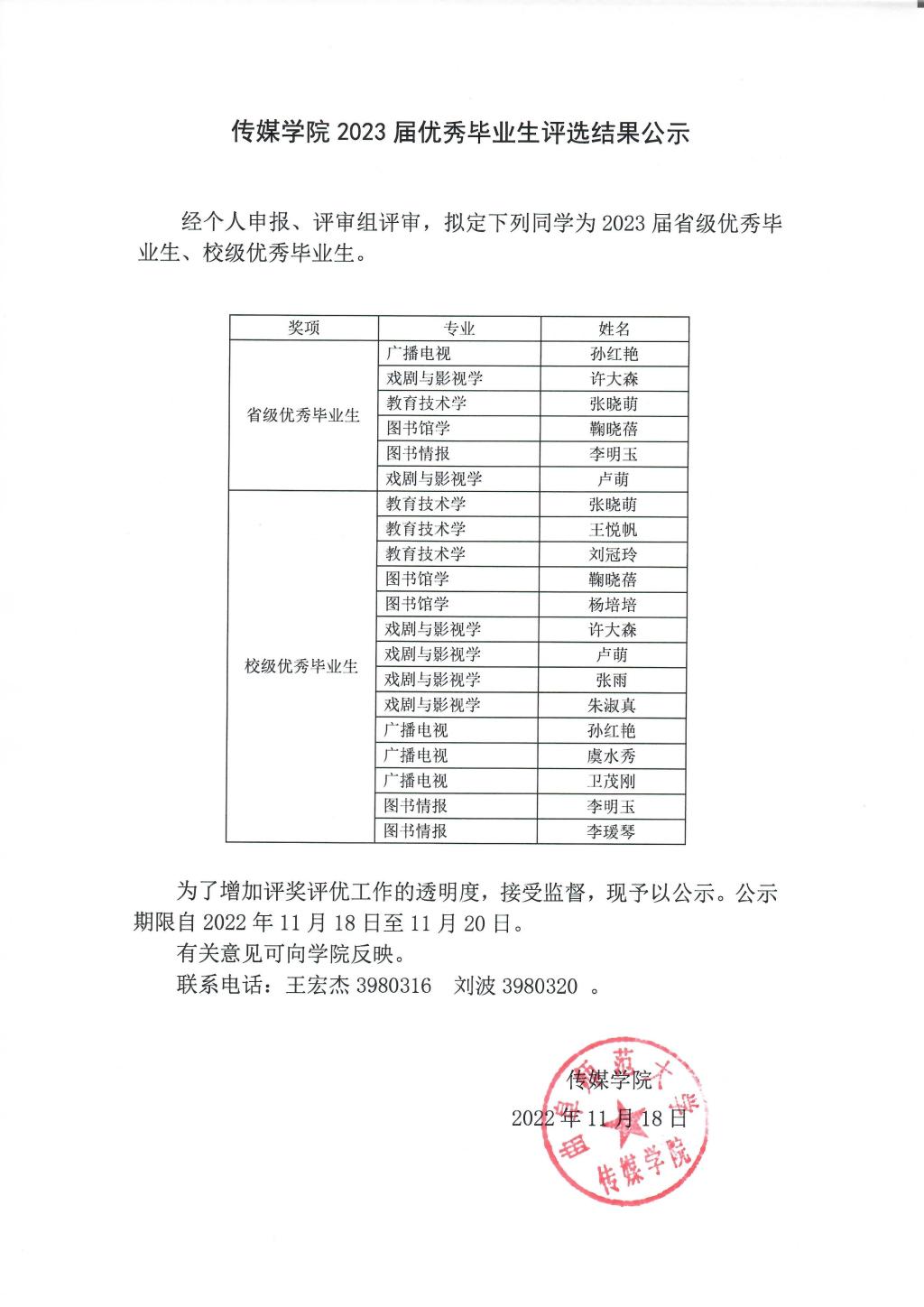 足球在线直播 2023届优秀毕业生评选结果的公示公告