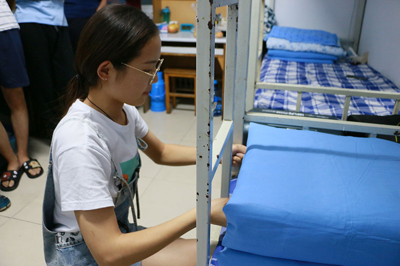 与此同时,宿管部组织2017级部分同学来到新生宿舍进行叠被子的教学。2017级同学对新生提出的有关学习、生活的问题也都一一解答,鼓励同学们有问题积极解决。2018级新同学纷纷表示师哥师姐十分热情,在足球在线直播