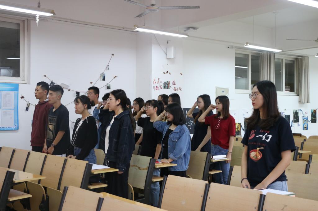 学生党支部党员纳新大会决议》,同意杨晨等十名申请人成为中国共产党预备党员。会议最后,预备党员面向党旗庄严宣誓,保证遵党规守党纪,表达对党的忠心,发挥身为学生党员的模范带头作用。