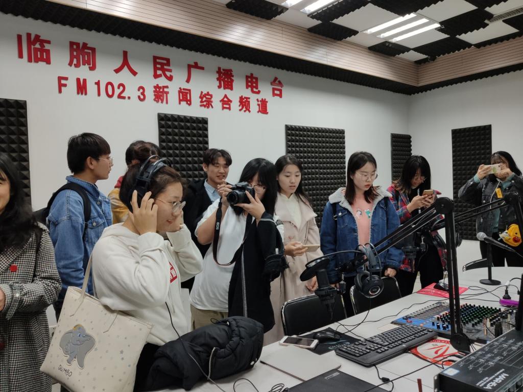 全体师生到达临朐广电大厦后,在工作人员的带领下首先参观了业务楼。工作人员详细为同学们介绍了临朐电视台融媒体中心,并针对“新闻女生”、“沂山先锋”、“平安临朐”等特色性栏目进行了讲解,使同学们对节目制作的流程以及节目内容的选择有了一定了解。接下来,工作人员带同学们参观了新闻演播室、播出科以及电台导播间,专业的设备及录播环境开阔了同学们的眼界,增长了同学们的专业知识。见习最后,我院全体师生与临朐电视台领导合影留念。