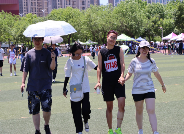 期间,学院党委书记王宏杰、党委副书记徐正伟、院长助理王焕景和各级辅导员在现场进行工作指导。本次运动会中,后勤工作者由学院部分老师和学生会11个工作小组共同组成。在老师的带领下,学生会成员负责各个方面的组织保障工作,统筹安排好当天的事宜,并随时应对突发状况。后勤工作者有序分发运动员的参赛必需品:号码布、曲别针等,检查药品、矿泉水等物资是否充足,并且多次校对运动员比赛的相关信息。在赛场终点,后勤工作者早早地做好迎接运动员的准备,为他们递上水或食品以补充能量。部分运动员在参赛时不慎摔伤,后勤工作者第一时间前往查看,细心地为他们处理伤口,为运动员们筑起坚强的比赛后盾。