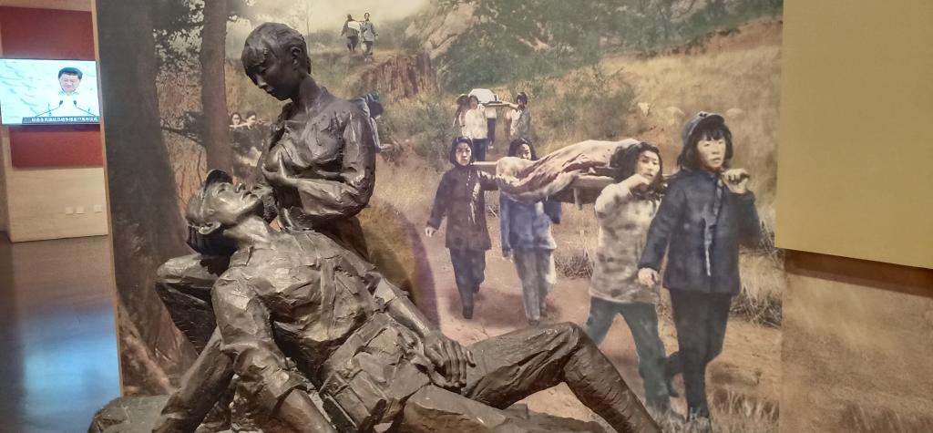 在纪念馆的最后一部分是缅怀英烈,在这一部分,小队成员看到了华东解放军在莱芜战役中获得的荣誉旗帜,那暗红色的旗帜既代表了战士们在敌众我寡的情况之下英勇无畏浴血奋战的顽强,也是以惹眼的红色时时提醒在和平时期的人们要铭记历史,珍爱和平。虽然旗帜颜色已经不再鲜艳,也有破损,但它为世人缅怀英烈提供了寄托。在小队成员采访一家前来参观纪念馆时,母亲怀里5岁的小男孩抢着讲自己以后要去当兵,认为当兵是很酷的事情。“当兵固然很酷,但当兵也意味着更要承担起保家卫国,不惧牺牲的责任。”男孩的父亲随即说。小队成员在先烈墙上看到在莱芜战役牺牲中的人们中,还有来自吉林,广东等四面八方的人,也有满族等少数民族,在捍卫国家土地的时候,中国人民所体现出的高度团结的民族凝聚力在现在也熠熠生辉。