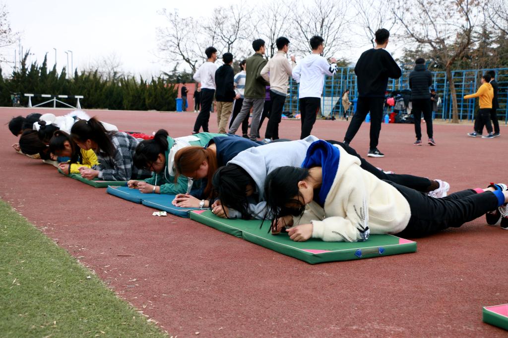 14:30,春训运动员准时到达场地并自行组织进行慢跑热身活动,在热身活动结束后,运动员们进行了压腿、前踢腿、后踢腿等准备活动,为接下来训练的顺利开展奠定了基础。随后,体育部人员组织运动员们进行分模块训练,运动员迅速按划分队列站齐,并分别前往各模块训练场地。长跑模块运动员进行八百米、一千米训练,在运动员训练的同时,有人员专门负责对训练时间进行实时监测与把控。同时,女生运动员分四人一组进行跳远训练。趣味模块开展“齐心协力”游戏,在玩耍中增强运动员们的合作意识,提高身体协调能力。除此之外,其他的运动员在规定场地进行仰卧起坐、平板支撑训练。在整个训练过程中,体育部人员认真负责地对运动员进行指导与监督,以保证训练顺利进行。最后,体育部人员再次整队,纪检部对运动员的出勤情况进行检查记录,一天的春训正式结束。据悉,在整个春训期间,学院为参与春训的同学准备了鸡蛋与牛奶,为春训的顺利开展提供了后勤保障。
