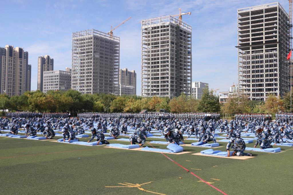 升旗仪式上,伴着庄严的国歌声,五星红旗冉冉升起。一支支方队迈着整齐的步伐接受检阅,口号清脆嘹亮,表演精彩纷呈,彰显了青春昂扬的精神面貌,激发了报效祖国的壮志豪情。摆字方队红色绸带和蓝色人海交映,朝气蓬勃;旗语方队红绿旗帜上下挥舞,动作干净利落,风格独树一帜;队列方队身姿挺拔,动作整齐划一,步伐坚定有力;心理健康操方队舞姿优美,青春洋溢;战地急救方队队形统一,技术精湛;棍术方队斗志昂扬,势如破竹,招式尽显新时代风采;内务方队整理工作有条不紊,训练有素;剑术方队身姿优美,奋发向上;擒敌拳方队气势恢宏,纪律严明,动作孔武有力;战术方队身手矫健,配合默契,令人热血沸腾。