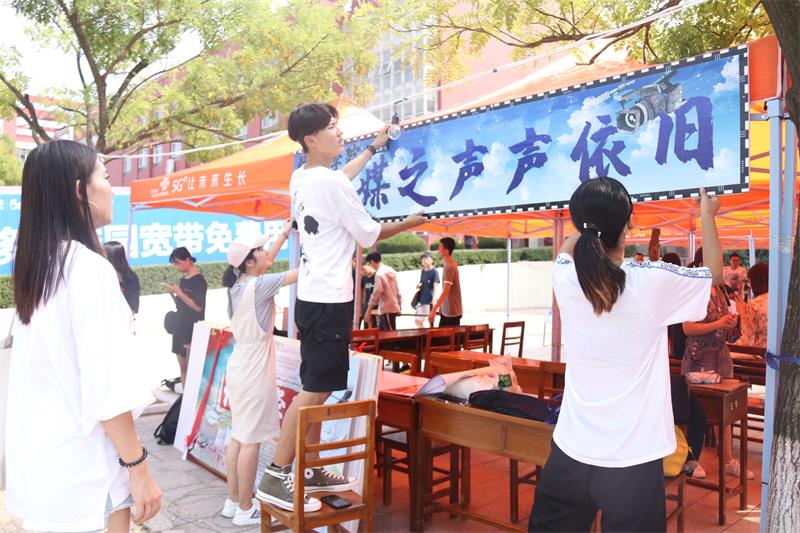 临时报道处,团委学生会各部门工作人员在此集合,开始迎新工作的各项准备,就搬运桌椅、布置场地、登记报到、宿舍分配、礼品发放等进行工作分配,使各部门尽快熟悉迎新准备工作流程。随后,足球在线直播