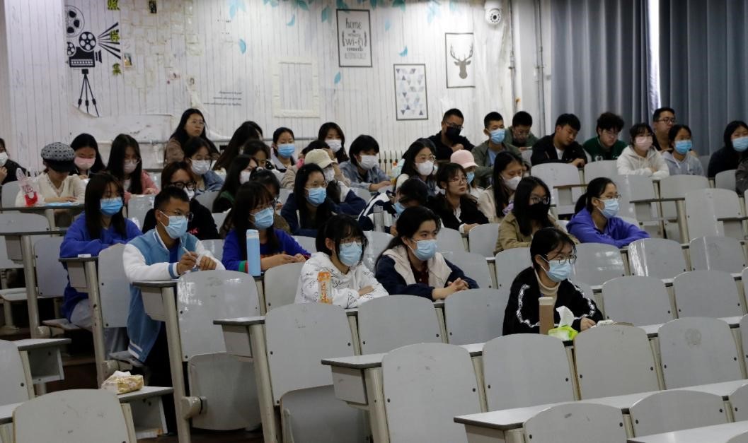 党委副书记田荣林担任主讲人,我院学生干部参与会议。