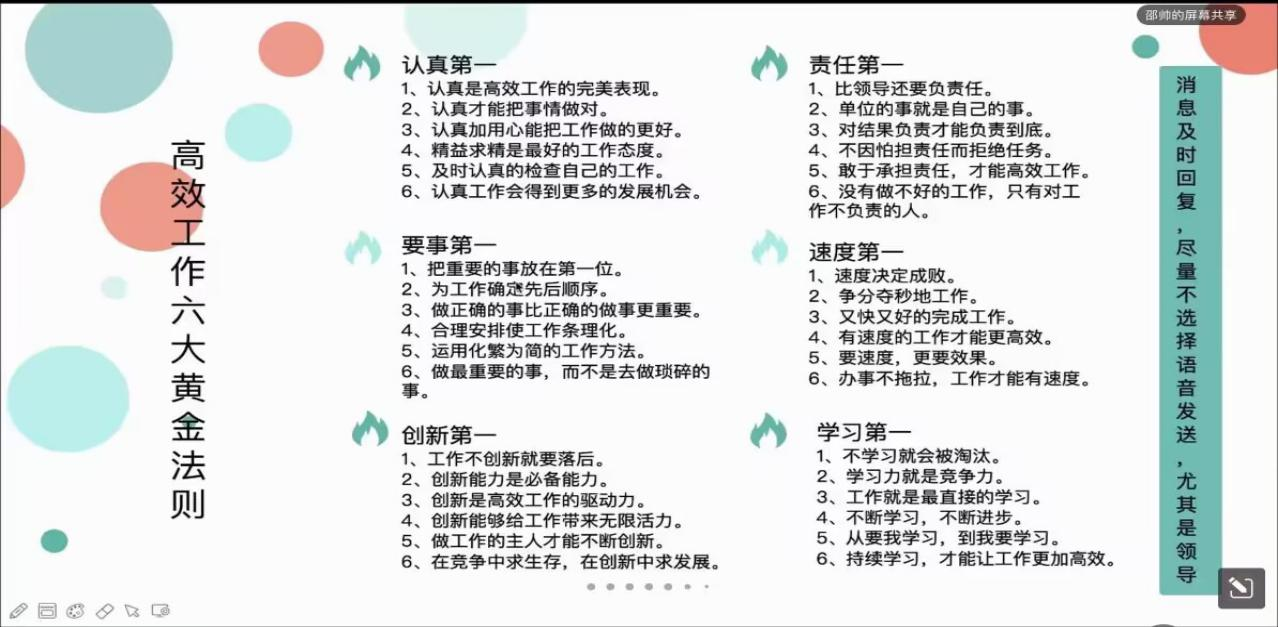 最后,邵帅作为行业前辈,针对工作新人上岗的普遍疑问,以己为例分享工作经验,打消学生们的实习焦虑、提振信心。会中,邵帅总结新员工要掌握的四条工作准则:一是低头走路,丰富自我,在学、能、品、行四方面严格要求自己;二是抬头看天,创新自我,锻炼自身工作能力;三是学会微笑,完善自我,与实习单位同事建立友好关系;四是自我加压,规划生涯,为未来学习工作积累经验。邵帅表示,希望同学们将本次实习机会当做真正的职场训练,悟出属于自己的“工作法则”。