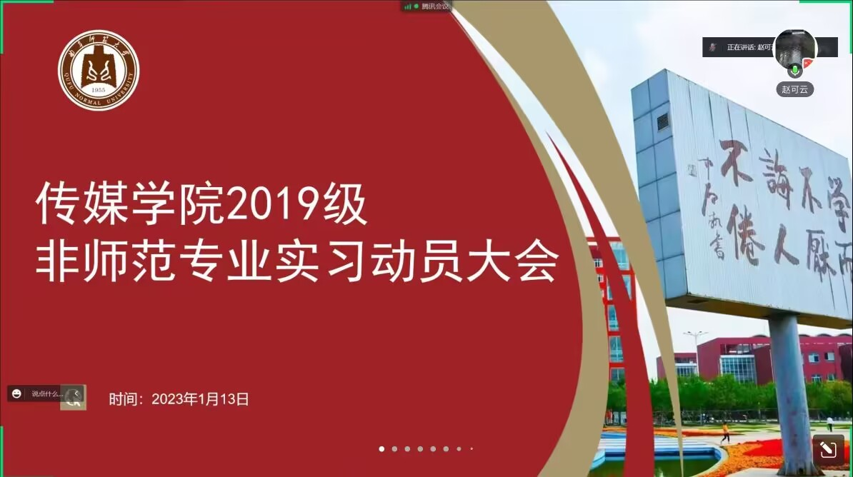 于线上召开2019级非师范专业实习动员大会。实习单位代表邵帅、足球在线直播