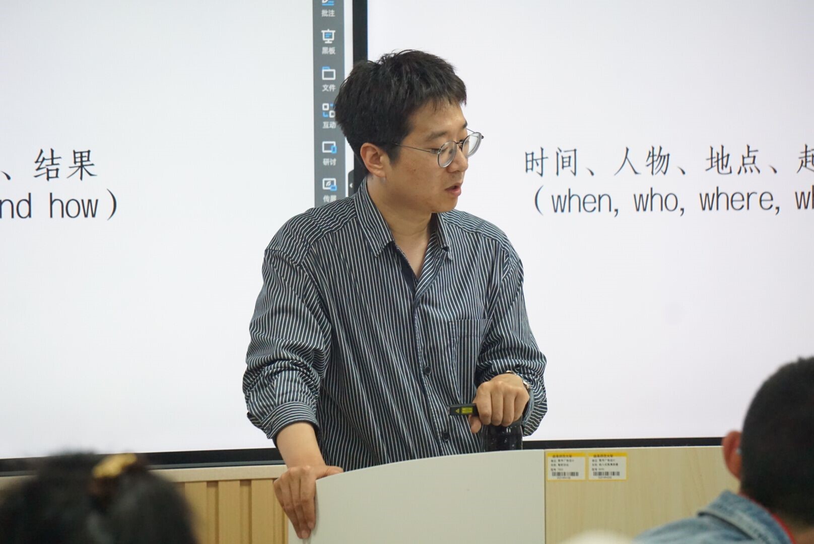 孙浩按照新闻写作六要素、新闻价值和新闻触觉、新闻故事的开头方法和类型、新闻写作的方法和技巧、内容运营的写作思路和技巧的逻辑展开。从日常工作的具体问题出发,孙浩对新闻写作六要素进行细致分析,带领同学们思考全媒体思维理论框架下新旧媒体新闻写作的特点,通过讲解重大事件的媒体报道案例加深了同学们对新闻稿的具体结构和写作技巧的认知。孙浩结合自身新闻写作经验,提醒同学们在日常生活中要注意培养新闻敏感,学会发掘表象背后隐藏的新闻点,同时要注重积累新闻素材。