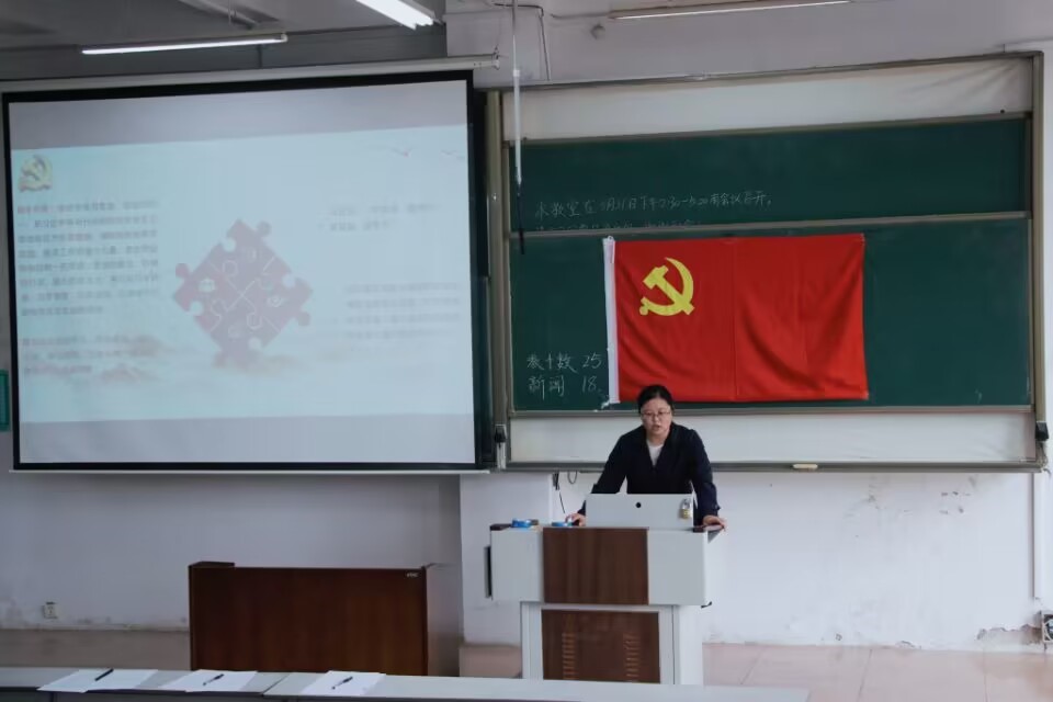 武莉华从“习近平新时代中国特色社会主义思想的具体内涵”“坚持习近平新时代中国特色社会主义思想的意义”“如何贯彻习近平新时代中国特色社会主义思想”三个方面进行重点讲述,详细分析了“八个明确”“十四个坚持”“坚持习近平新时代中国特色社会主义思想的重要性与必要性”等方面问题。武莉华希望全体党员学生做到不忘初心、牢记使命,深入学习贯彻习近平新时代中国特色社会主义思想和党的二十大精神,认真学习党的二十大工作报告,自觉提高自身素质,争做一名优秀的共产党员。