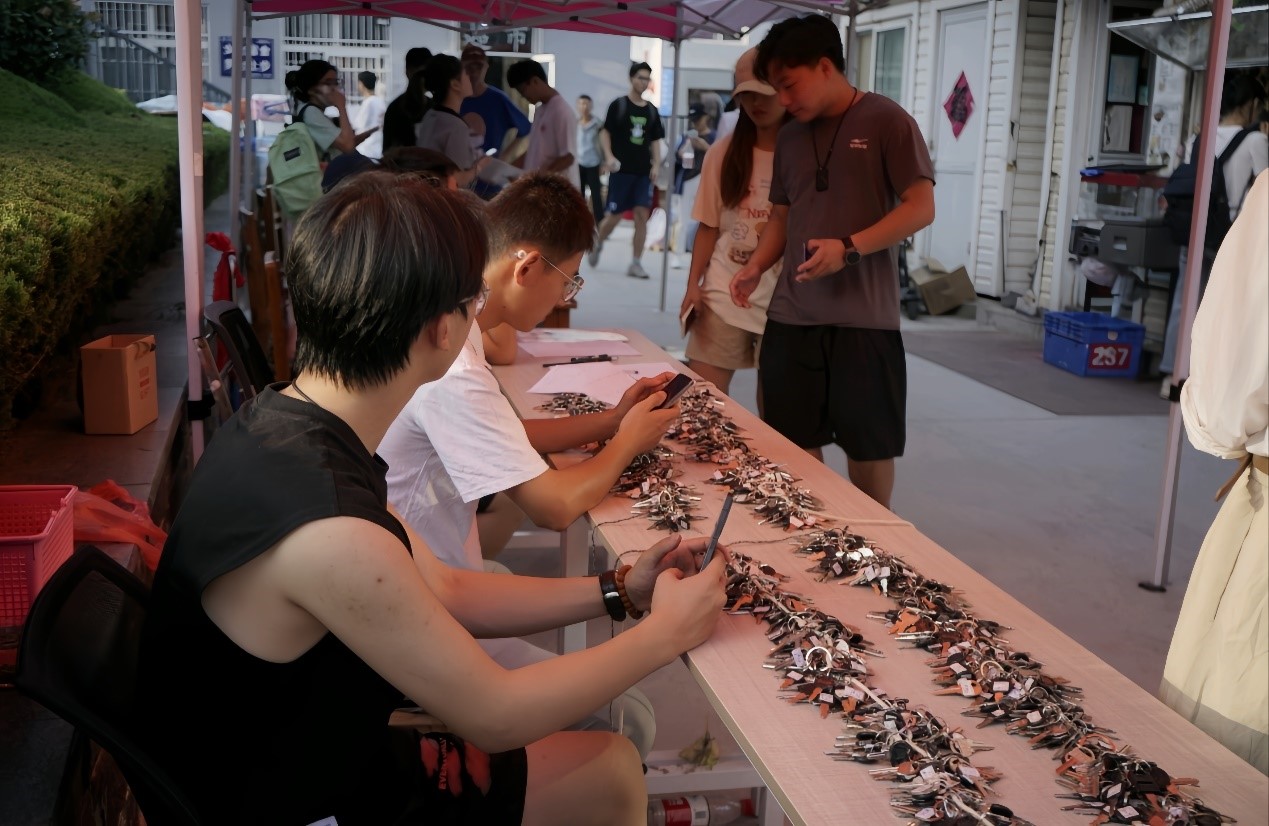 迎新当日,宿舍园区内设置物品发放组、宿舍物品登记组等多个小组并指定负责人,以确保宿舍迎新工作有序进行。6:00起,陆续有新生前来园区报到。登记完成后,接送部成员帮助新生搬运行李送至宿舍园区内,带领新生领取钥匙、暖壶及其他生活用品,并为其介绍园区内部的具体情况,为新生答疑解惑。在搬运行李过程中,志愿者们充分发扬奉献互助精神,大箱小包、或提或扛,帮助远道而来的新生们完成行李搬运;待新生顺利入住,再返回大本营继续工作。志愿者们表示,这项工作虽然是“力气活”,但能切实帮助新生安心报道、顺利报道,这让他们感到无比自豪。