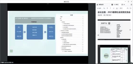 于线上召开2023暑假社会实践线上交流会议。会议由义工与实践部部长张磊主持,魏露、张官怡等实践队代表队长进行实践分享。