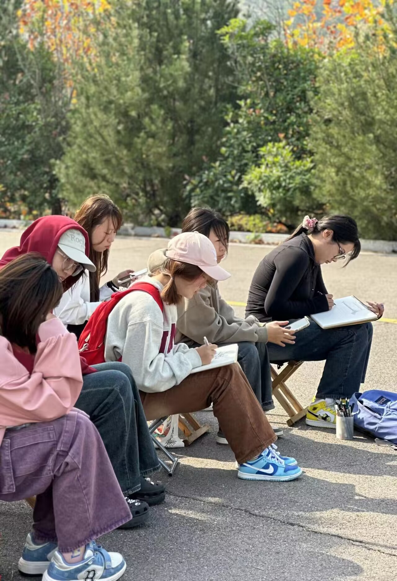 2021级数字媒体艺术专业学生前往日照市大青山写生基地,开展专业见习写生活动。