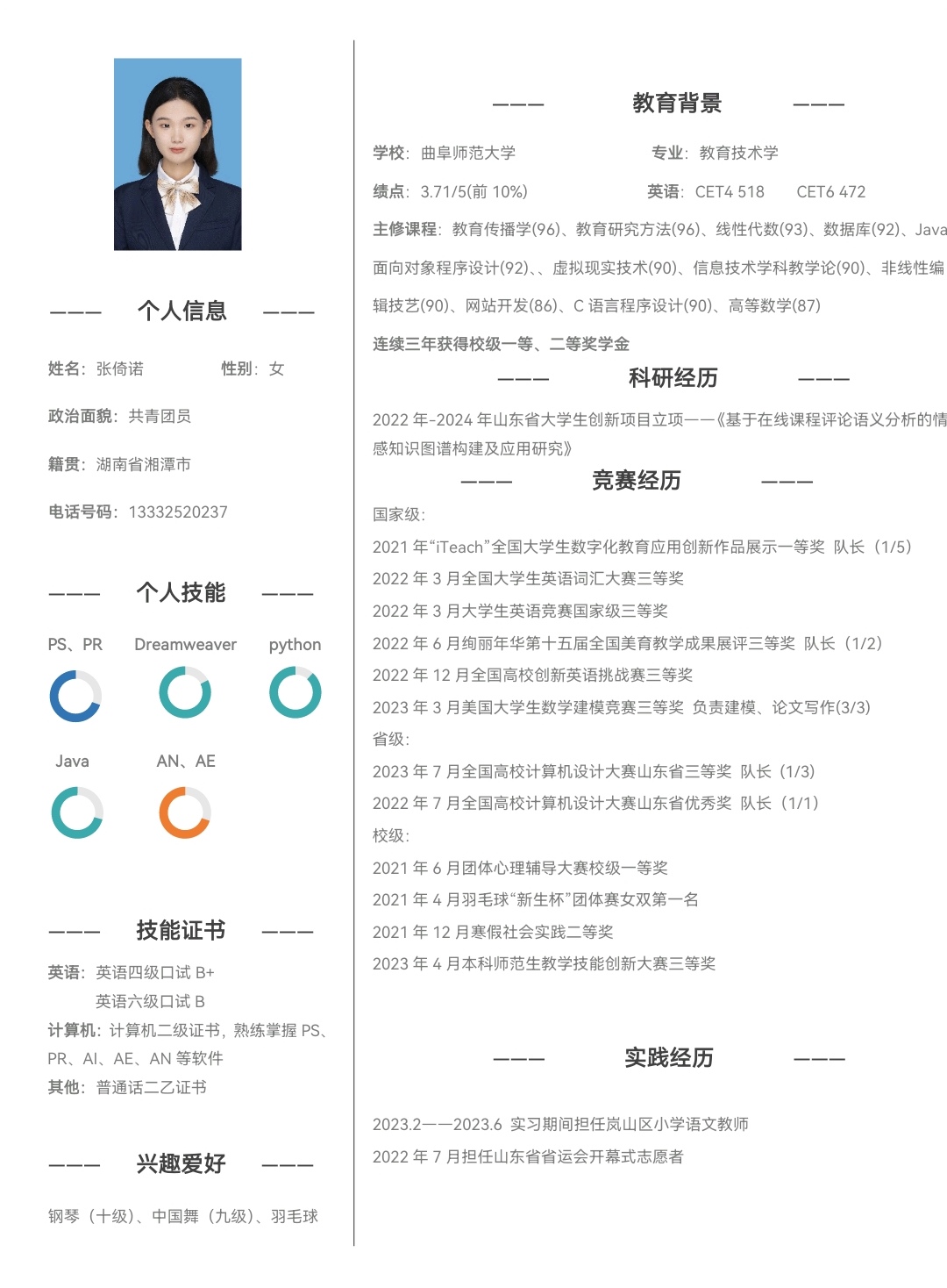 简历是求职过程中不可或缺的一环,一个精心设计的简历可以在海量的求职者中脱颖而出。比赛鼓励学生参赛者通过创新、个性化的设计方式呈现自己的专业能力和独特魅力,提高简历的质量和竞争力,破“简”而出、秀出风采,实现自我青春理想。