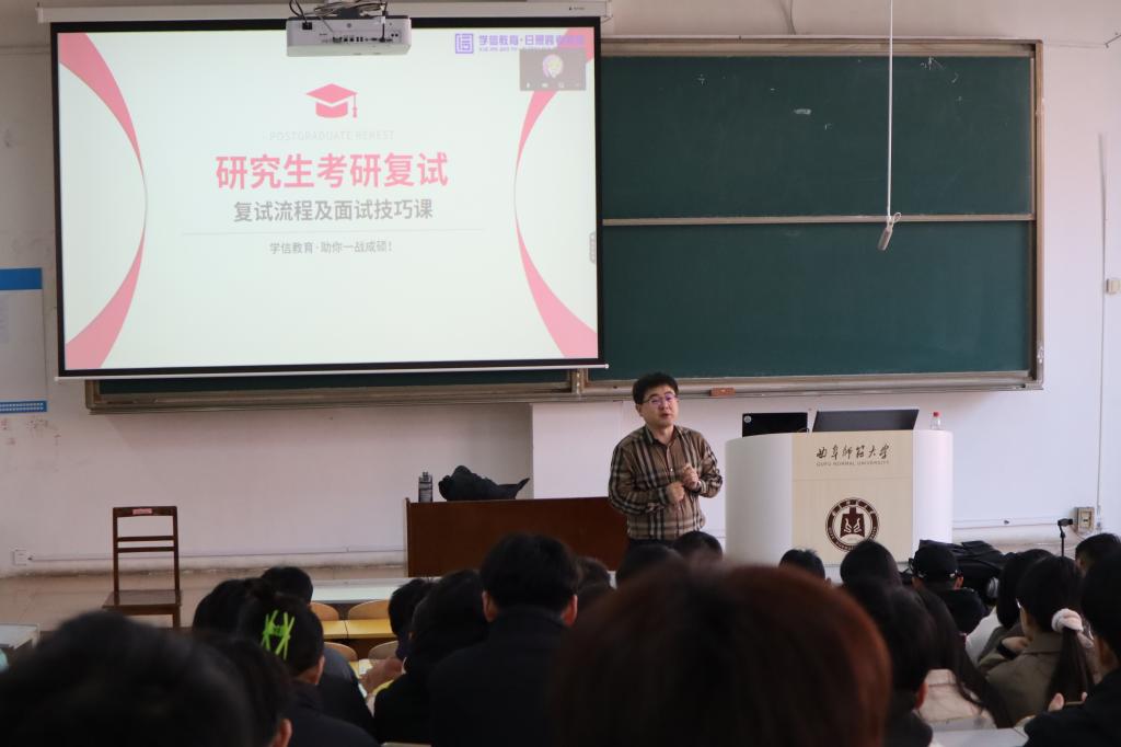 党委副书记田荣林及各年级辅导员出席活动,2024届考研复试考生参与活动。活动由学信教育跨考考研校长王晓磊担任主讲。