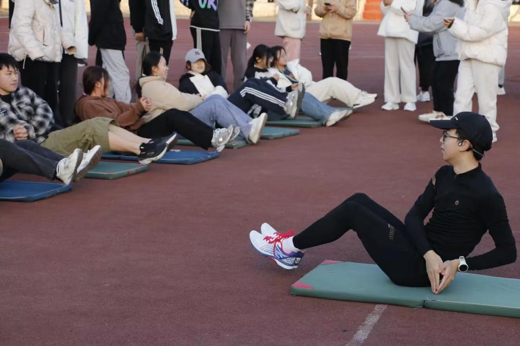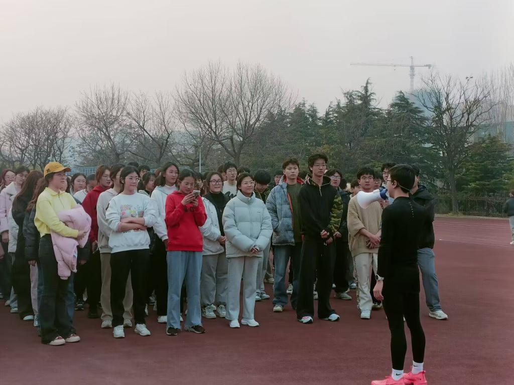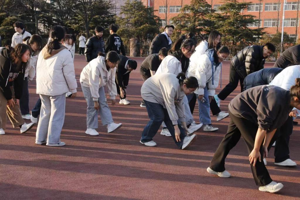 整齐划一,铿锵有力。热身运动后,同学们开始了耐力跑训练。先耐力,后速度,以热爱战胜困难,以坚持磨练自我。同学们踏着矫健的步伐,在操场上尽情挥洒汗水,在高强度的训练中,同学们互相鼓励、互相配合,眼前的困难变成了奋发向前的动力,激励他们完成一次次的训练,实现一次次突破,在跃动中勃发青春,在拼搏中彰显团结。