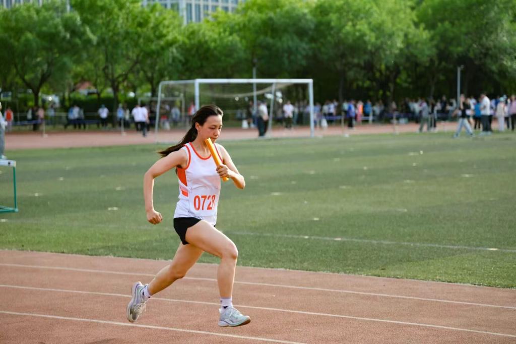 女子跨栏场地上,她们疾驰如风,身轻如燕,迅速跨越一道道栏架,动作流畅,尽显传媒学子魄力。