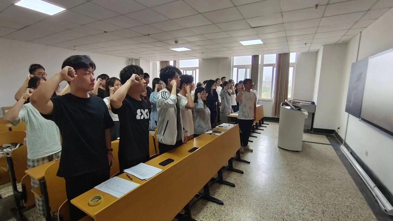 会上,与会人员深入学习领会习近平总书记视察山东的重要讲话精神,各党支部书记积极发挥表率作用,引领党员深入学习党规党纪的重要内容,全体党员集体研读、交流探讨,纷纷表示要将讲话精神转化为实际行动,将党规党纪内化于心、外化于行。李怡霏、王晓露等二十三位入党申请人依次宣读了自己的入党志愿书,表明了入党的坚定意愿与决心。入党介绍人依次汇报了入党申请人的具体情况,并表达了推荐意见。随后,经大会无记名投票表决,一致同意吸收李怡霏、王晓露等二十三位同志为中共预备党员。各党支部书记组织并带领中共预备党员进行入党宣誓仪式,全体党员紧握右拳,目光坚定,面向党旗进行庄严宣誓,在铮铮誓言中把握思想之舵、筑牢信念之基。