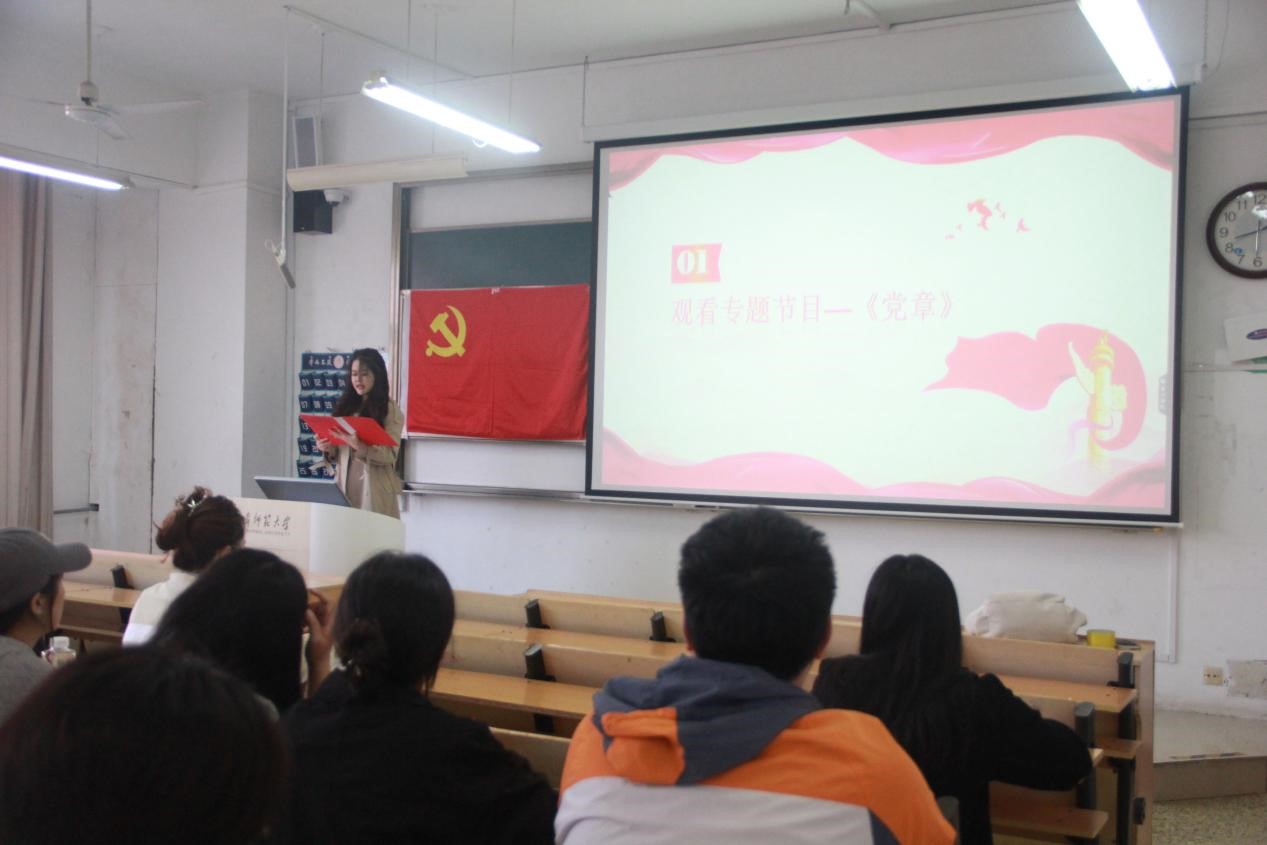 此次活动共有65名来自三个学院的发展对象齐聚一堂,共同开启了这场关于党性教育和党员发展的深度探讨。活动伊始,全体参会人员共同观看了专题节目《党章》,该片以习近平新时代中国特色社会主义思想为核心,紧密结合二十大党章修正案的最新精神,生动展现了党的建设和组织工作的新要求,为整场活动奠定了坚实的理论基础。