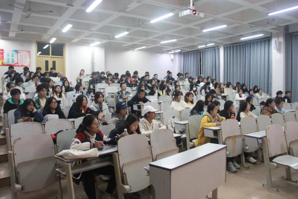 2024级辅导员刘扬帆主持会议,2024级全体学生参与会议。