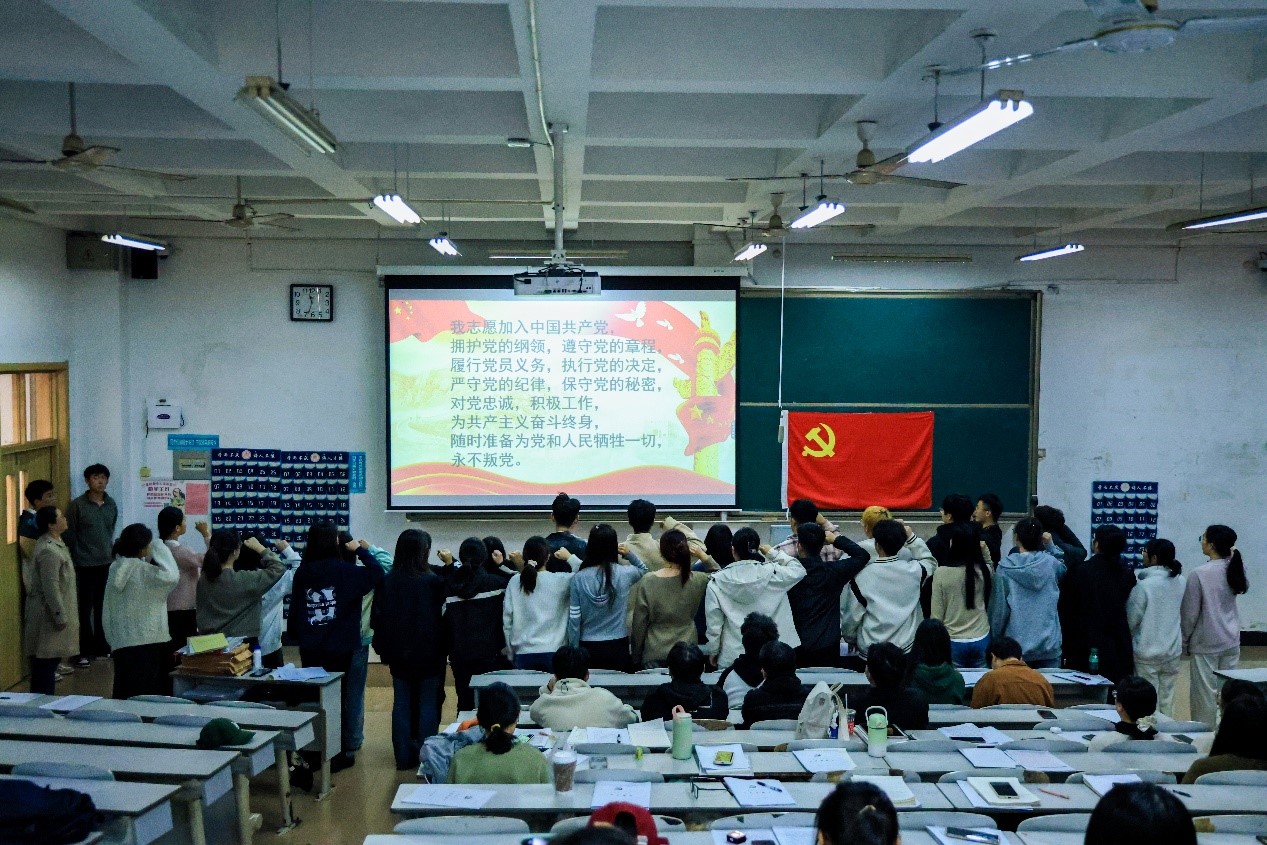 会议开始,本科生第一党支部书记武莉华同志带领全体党员深入学习习近平总书记在党的二十大上对青年的寄语。她强调,党员们应坚守初心,不断自我提升,增强责任感。紧接着,二十六位党员发展逐一对象宣读了他们的入党志愿书,用真挚的情感展现了对党的忠诚和坚定信念。入党介绍人也对申请人的情况进行了详细汇报,并提出了推荐意见。支部委员会报告了发展对象的综合政审情况,经全体到会正式党员的无记名投票,二十六位党员发展对象被全票接纳为中共预备党员。