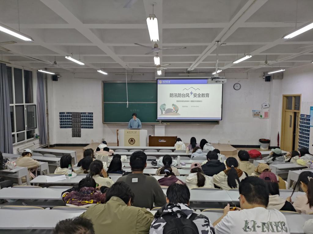 组织23、24级教育技术学专业学生于A楼开展防汛防台风安全教育主题活动。