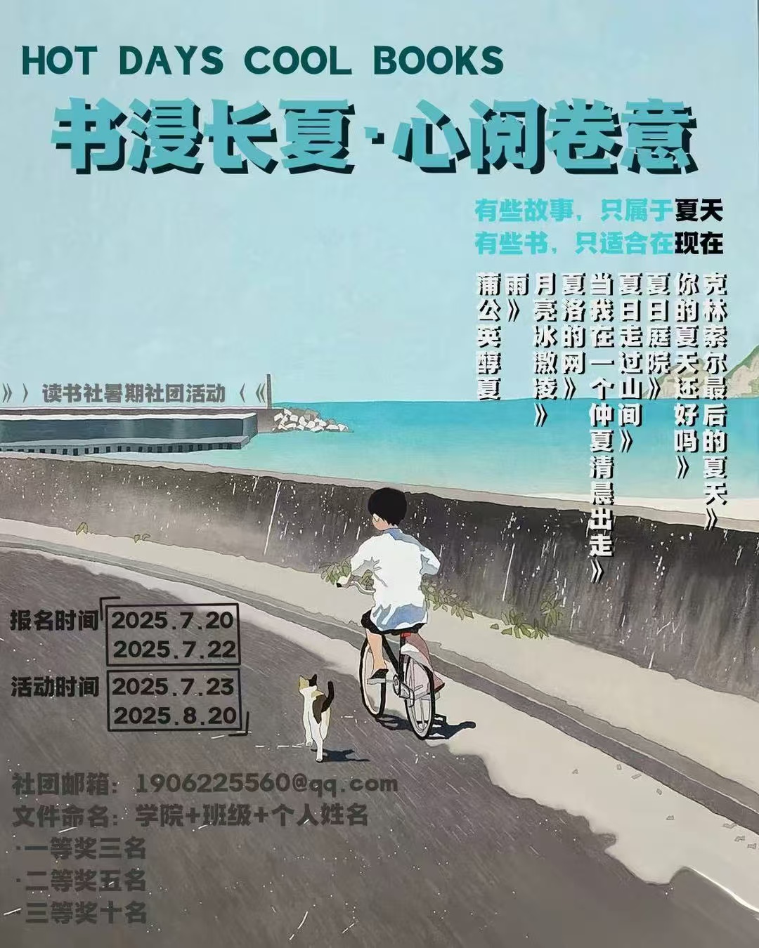 为丰富学生假期生活,营造书香校园,7月23日至8月20日,读书社举办了“书浸长夏·心阅卷意”主题阅读活动。活动面向曲阜师范大学全体在校学生展开。