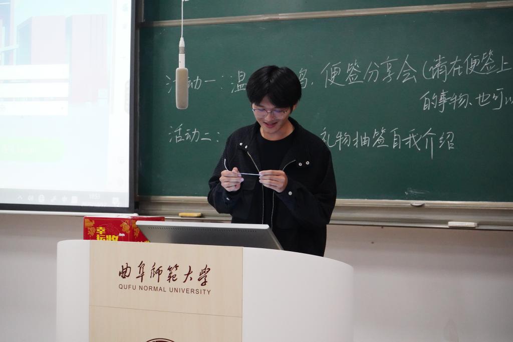 本次活动以“自备礼物+自我介绍+抽签收礼”为主线流程。同学们精心准备了轻量平价且富有心意的礼物,并附上亲笔书写的便签,分享个人小故事或推荐喜爱的音乐,使每一份礼物都成为传递自我、联结他人的情感纽带。在一分钟自我介绍环节中,同学们或幽默风趣,或真诚恳切,充分展现个性,迅速拉近彼此距离。随后的抽签收礼环节更是精彩纷呈,伴随着惊喜与感动,陌生感在温馨互动中悄然消融,现场洋溢着轻松愉悦的氛围。