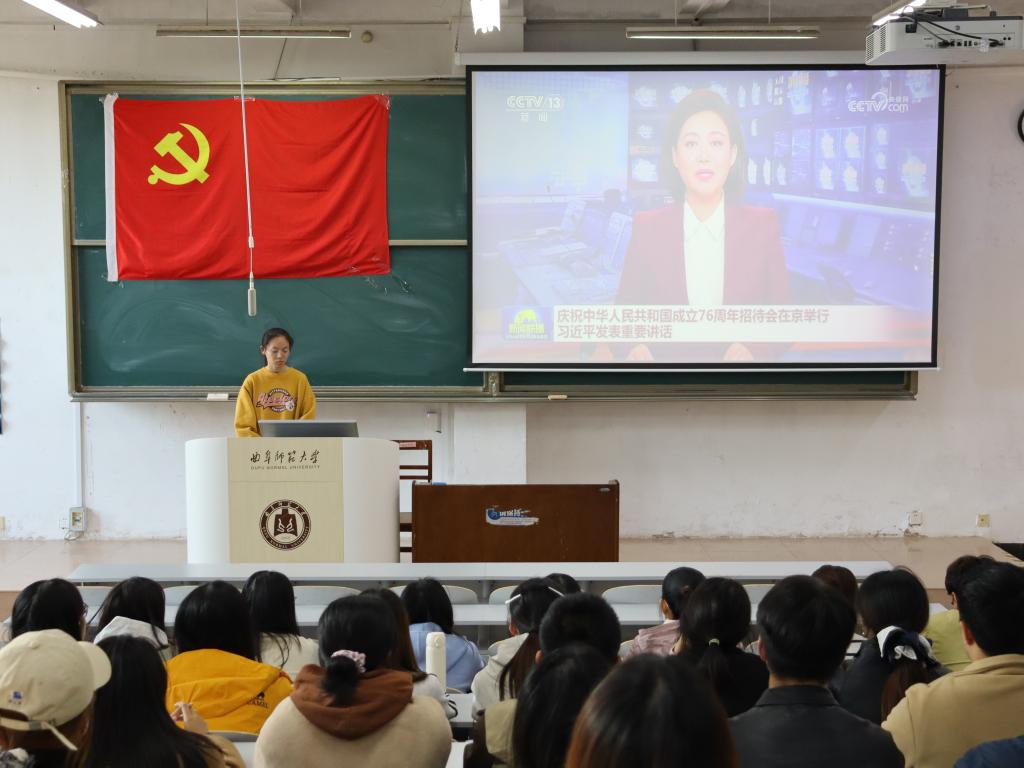 活动伊始,全体党员集体观看了新闻视频《庆祝中华人民共和国成立76周年招待会在京举行 习近平发表重要讲话》。习近平总书记深情回顾了新中国成立76年来取得的辉煌成就,擘画了未来发展的宏伟蓝图,对全体党员提出了新的期望与要求。与会党员认真聆听,深刻领会讲话精神,纷纷表示将深入学习、贯彻习近平总书记的重要指示。