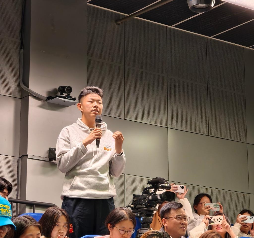 讲座围绕“数媒声音艺术数字化探索”的主题展开,结合现实环境中的声音实例,同步进行课堂实操演示,生动阐释了音效设计的创意表达与技术实现路径,系统介绍了“音景”等核心概念,并深入解析了数字音频艺术的多元表现形式。此外,讲座还拓展讲解内容,引导学生探索声音在数字艺术领域的创新潜力,有效提升了参与者的数字音频创作思维与实践能力。课上,2024级数字媒体艺术专业同学上台演示并讲解了自己的音效设计作品,分享交流了自己的制作经验。在互动问答环节,同学们围绕声音创作技术、跨媒介融合等议题踊跃提问,Giovanni Verga教授逐一作出细致解答,进一步加深了师生对数字音频艺术的理解。