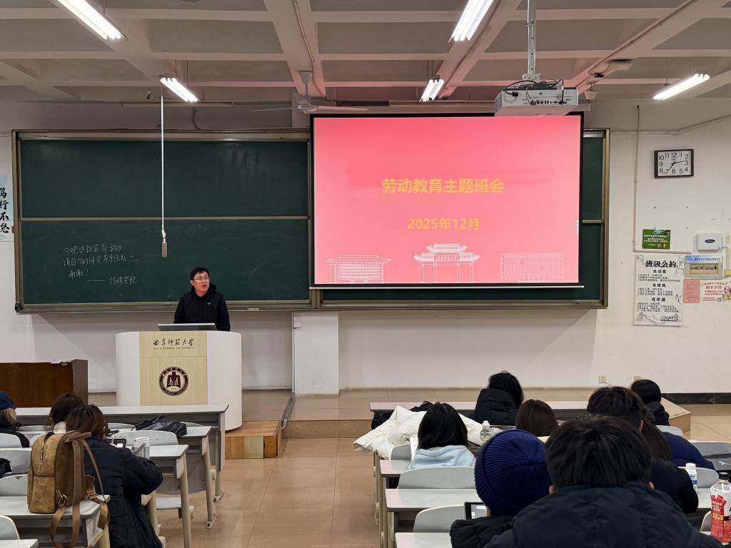 2025级班级开展劳动教育主题班会,辅导员张洪孟以“理论+实践”结合的形式,为同学们系统解读劳动教育的核心要义。