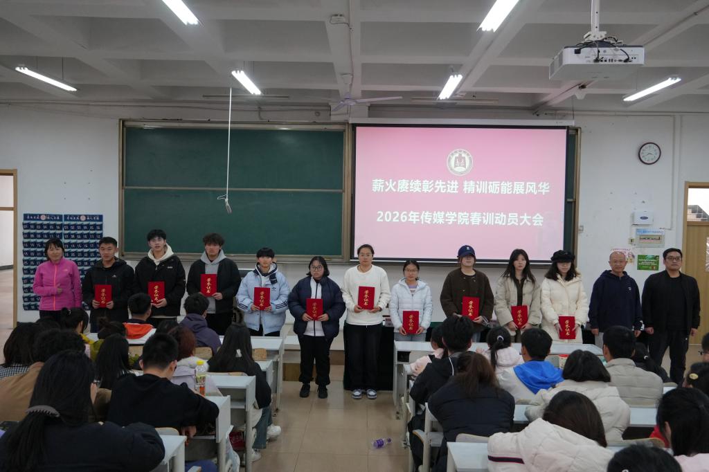 会议对2025年运动会成绩进行总结并为获奖代表颁发荣誉。会议表达了对同学们全面发展的殷切期望,同时勉励全体运动员科学训练、勇于拼搏,将体育精神内化为成长动力,在赛场上展现传媒学子的风采。随后,获奖学生代表、春训运动员代表及教练员代表分别发言,结合自身经历分享训练心得,号召同学们积极投身体育锻炼,在坚持与汗水中收获成长。