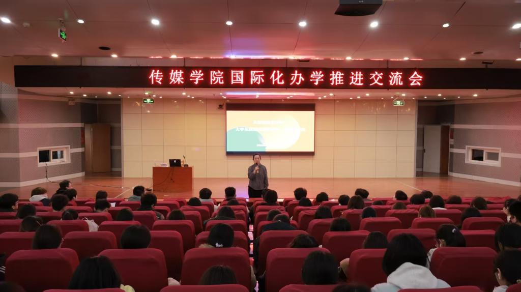 于图书馆报告厅举办国际化办学推进交流会。国际交流合作处陈晓丽担任主讲,学院全体学生参加交流会。