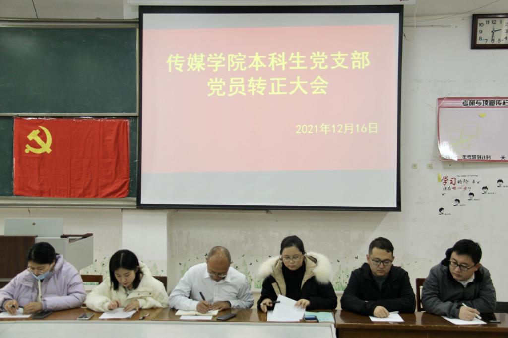 于JA202组织召开本科生党支部党员转正大会。学院党委副书记田荣林、本科生党支部书记武莉华、辅导员张洪孟、乔希、刘扬帆、商秀英出席会议。大会由乔希主持。