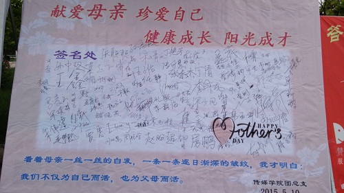 正值母亲节到来之际,为感恩母亲母爱,关注健康成长,5月10日上午9:00我院团总支学生会女生部举办“献爱母亲——母亲节签名活动”活动面向全校同学,以感召大家共同感恩母亲、关注健康,珍爱自己。