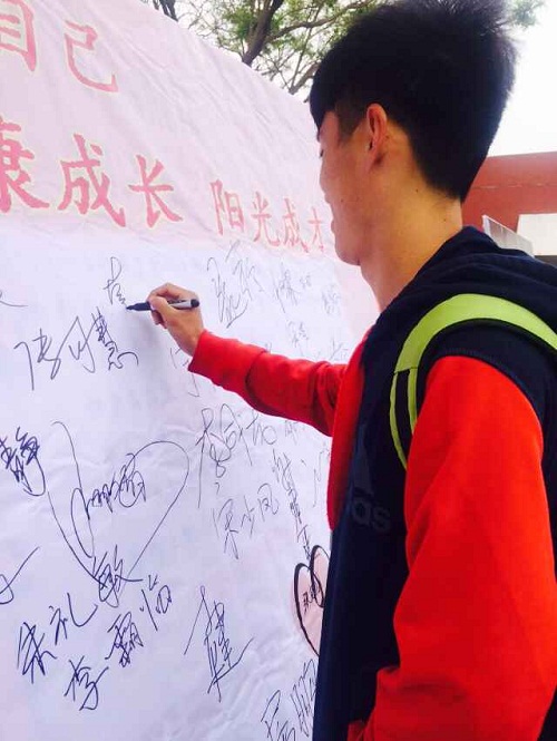 活动伊始,女生部在学校北门展板处贴上横幅,并向大家宣传说明本次活动的主题为:献爱母亲,珍爱自己。并在横幅上打上了“献爱母亲,珍爱自己。健康成长,阳光成才”的标语,感召大家感恩母爱。活动过程中,女生部相关负责人员为大家耐心讲解了本次活动的目的及意义,同学们受到感召纷纷在展板上签上自己的名字以表明自己会牢记母爱恩情,感激母亲的付出。
