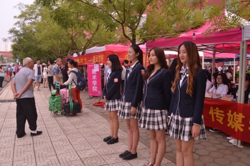 大本营的正前方有一条亮丽的风景线——礼宾队,他们负责接待刚来的新生,一对一带领新生顺利完成报到,使独立报到的新生不再迷茫,并耐心回答新生的疑问,提高了工作效率,使迎新工作有条不紊的进行。