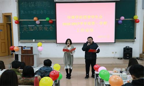 联欢会气氛热烈,肖龙航和刘蓉为本年度工作出色的部门颁发奖状,对同学们一年来的的辛勤付出和努力工作做出了充分肯定,更激励同学们在新的一年里矢志不渝,继续前行。同时,晚会中频繁的抽奖环节和游戏环节更是充分带动了全场气氛,同学之间的默契互动,消解了生疏与隔阂,一次次地拉近了彼此间的距离,使传媒大家庭更加团结。