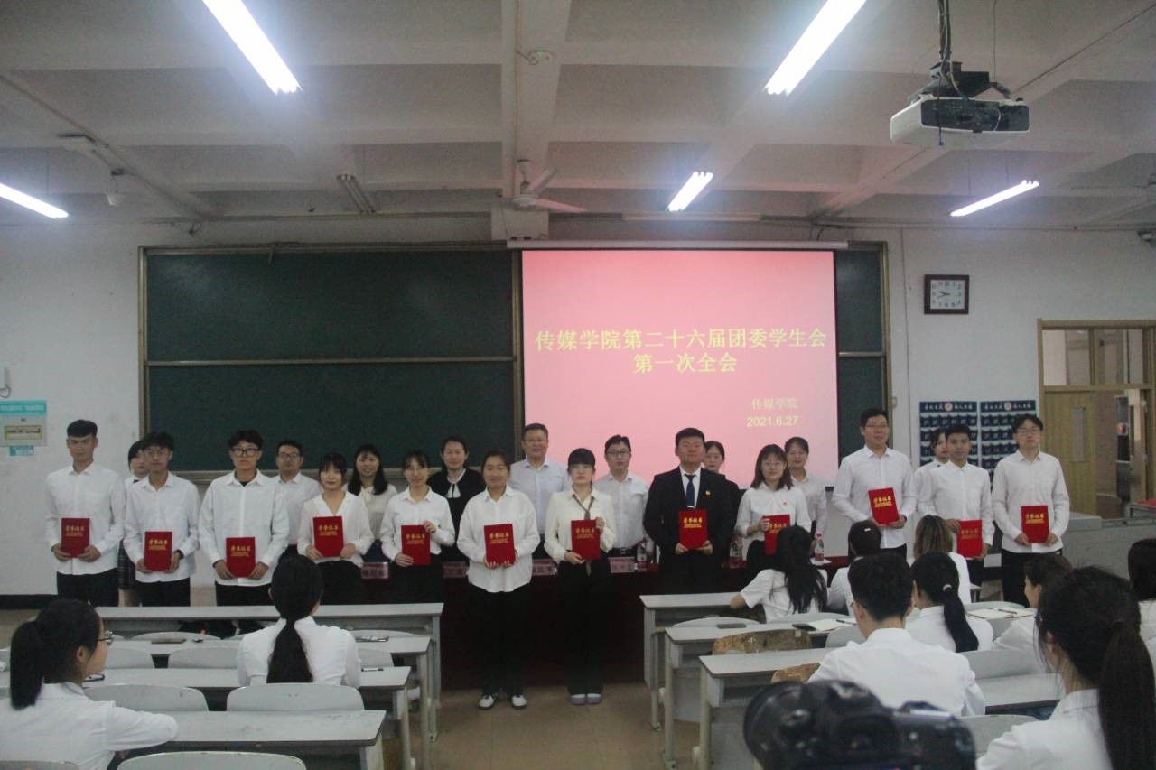 大会伊始,崔均烨宣读了二十六届团委学生会主席团、部长竞选结果。领导老师为二十五届优秀团委学生干部颁发荣誉证书,表彰其工作成果,为新一届成员树立榜样。随后,徐正伟发表讲话,简单回顾了学生会工作并给予赞扬与肯定。在建党一百周年来临之际,结合国内外时事热点,徐正伟强调,学生干部必须明确政治立场,提高政治觉悟和素养,厚植爱国情怀,争做时代新人。针对目前存在的问题,徐正伟从个人能力培养、部门协作等方面提出建议。最后,徐正伟鼓励同学们勇于克服困难,增强责任和担当意识,团结同学,在今后的学习与工作中共同进步。