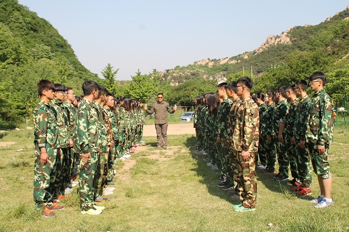 师生在教练的带领下进行篝火晚会,唱歌、跳舞、走秀……各种才艺轮番上阵,“前方打仗后方支援”的小游戏将晚会推向高潮,“将军”们被后方的支援团打扮一新进行走秀,引来阵阵笑声。