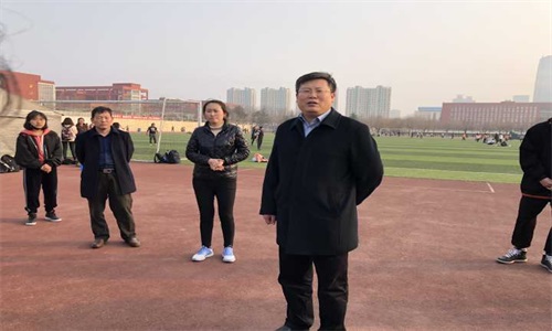 党委副书记徐正伟、团委书记张守荣、2017级辅导员李兴及团委学生会相关学生干部到我校西操场走访运动员训练情况。