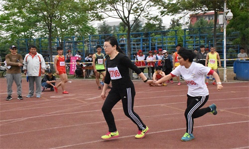 教工女子4*100接力比赛中,由于第一棒出现了一些小失误,特为足球在线直播
