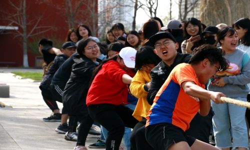 随后,拔河等比赛正式开始。在拔河比赛中,新闻三班抽签获得了第一轮免赛的机会,其余6个班级两两对抗。在裁判“开始”口令下达后,各班同学齐心协力,不断调整比赛技巧,加油呐喊声使队员士气大增。经过一番激烈的角逐,教育技术一班摘得拔河桂冠。