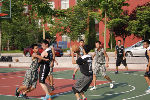 的主力队员进行贴身防范。传媒队长尤爱生在与队员的密切配合下,突破重围进球得分。紧接着,11号李昊林在重重包围下远射进一个三分球,大大鼓舞了传媒队员的士气。尽管地理男篮奋起反攻缩小了比分差距,但最后还是以8:14的比分不敌传媒男篮。