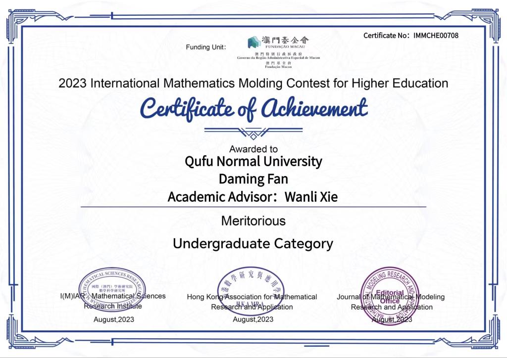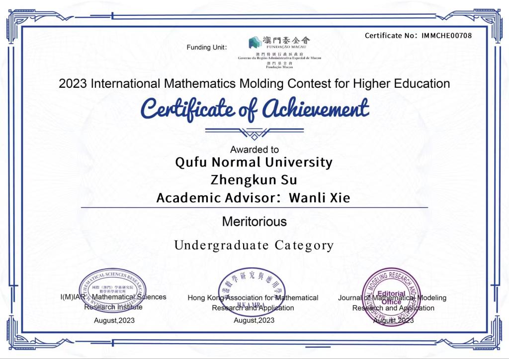 第四届“华数杯”全国大学生数学建模竞赛由天津市未来与预测科学研究会、中国未来研究会大数据与数学模型专业委员会举办,旨在培养大学生的科学精神及运用数学解决实际问题的能力,为创新性人才的培养奠定基础,为各行各业培养和选拔优秀的人才。2023年国际高校数学建模竞赛(以下简称竞赛)是国际(澳门)学术研究院数学科学研究所、数学建模研究与应用期刊社联合香港数学研究与应用学会主办,为列入澳门特别行政区政府澳门基金会(行政长官直属)立项资助名单的国际性学科竞赛。我院凡大铭、柳师宇、苏正坤三人组成的队伍,从3000多支队伍中脱颖而出。传媒学子在竞赛中充分发挥奋斗精神,通力合作、迎战强敌、突破自我、勇攀高峰,凭借出色的研究能力及团队合作精神斩获两项赛事一等奖。