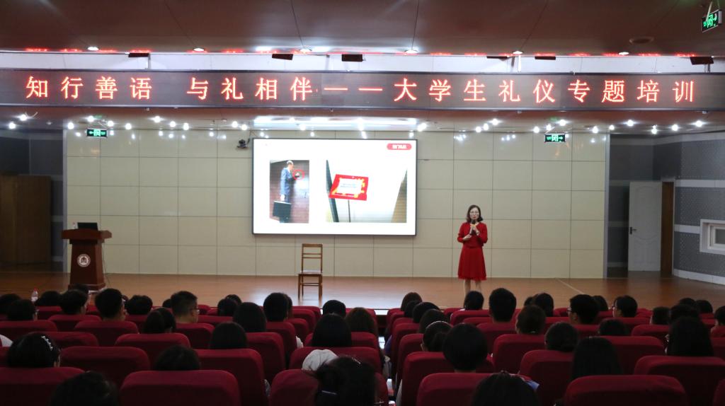 培训会正式开始前,徐正伟对赵晓利老师的到来表示欢迎,并希望同学们认真听讲,通过本次讲座的开展学好各项礼仪。培训会上,赵晓利从礼仪概述、形象礼仪、举止礼仪、交际礼仪、沟通礼仪五个方面对同学们进行培训。赵晓利提出,同学们需注意礼仪细节,遵守基本的礼仪原则,做到“严律己,宽待人”,养成良好的礼仪习惯。赵晓利从礼仪的起源讲起,用中国古代传统礼仪举例,阐释学习礼仪的重要性,传授同学们养成良好仪态的方法,对同学们的行为举止提出要求。会议结束后,乔希向赵晓利老师精彩的讲解表示感谢,并对本次会议作出总结,希望同学们认真领会会议内容,将其落实到行动中。