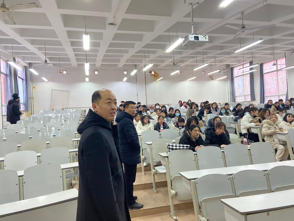 院长王焕景、党委副书记田荣林、副院长赵可云、辅导员乔希、商秀英共同前往学生课堂了解情况。