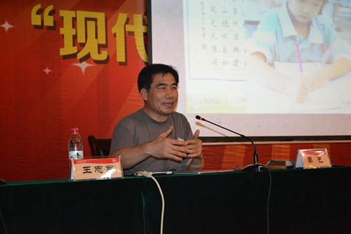 报告会伊始,李艺教授提出了在移动手写平台上自动指导写字的课题。他用小学阶段、中阶段的数据和例子表明我国汉字书写的现状,即汉字书写教学要求旺盛,汉字书写教学资源匮乏。教育部制定的《中小学教学计划指导纲要》明确规定中小学每周一节书法课,要求非常高。李艺教授强调,要想写一手好字须要专业老师的指导以及数年的坚持。随后,他运用实验例子,向大家展示了在移动手写平台上续笔的识别问题,并指出下一步将陆续开展工作进行汉字一一匹配,手写汉字识别方案。最后,在座学生提出了繁体和简体、硬币和软笔的传承,写字好与写字快之间的平衡问题,李艺教授一一解答,精彩的讲解消除了同学们心中的疑惑。