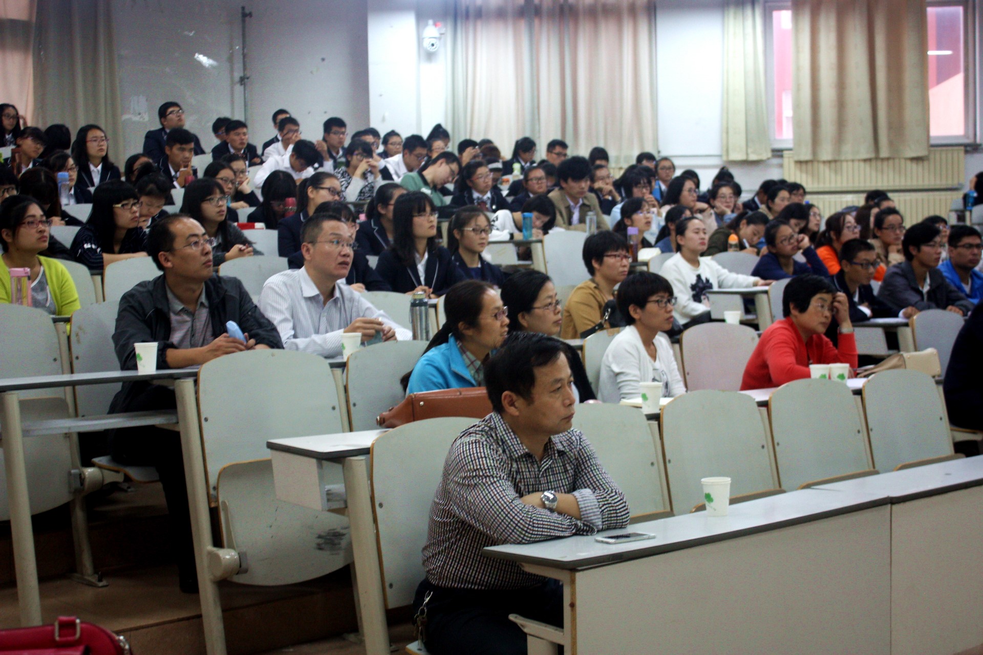 1995级校友,现于华南师范大学任教授,堪称“校友中的佼佼者,在座同学学习的榜样”。随后报告正式开始,张秀梅坦言自己刚下飞机时非常激动,并表示自己谈不上是每位同学的榜样,只能说是与大家共同分享经验。提及自己的学习经历与感悟,张秀梅为大家系统地讲述了自己的求学经历,并指出中学时代应伏案学习,大学时代就要四处张望。同时,一张“窗中观景”的照片使得张秀梅感慨不少:“大家可以看到,窗户外面是一片风景,透过每个窗格看到的景物只是其中的一小部分。整片风景就好比我们大学的所有专业,本来是一个整体,而人为的界定就像窗框一样将其划分为一个一个的小区域。”由此告诉大家,身为大学生应该打开眼界,全局而观。